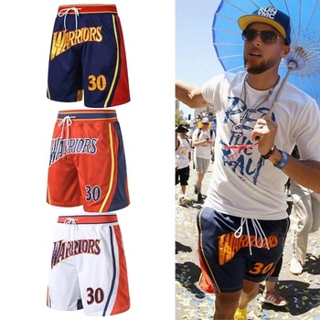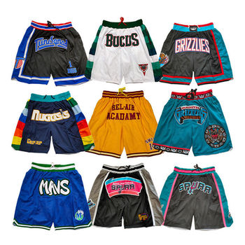 กางเกงขาสั้นบาสเก็ตบอลอเมริกันแบบกำหนดเองกางเกงขาสั้นปักลายตาข่ายสไตล์วินเทจสำหรับทุกทีมระบายอากาศ