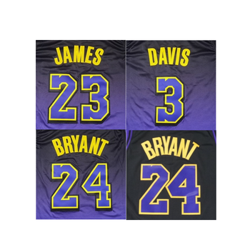 เสื้อบาสเก็ตบอลเย็บสีม่วงใหม่ล่าสุด2024-25 Los Angeles 23 James 24 Bryant 3 Davis